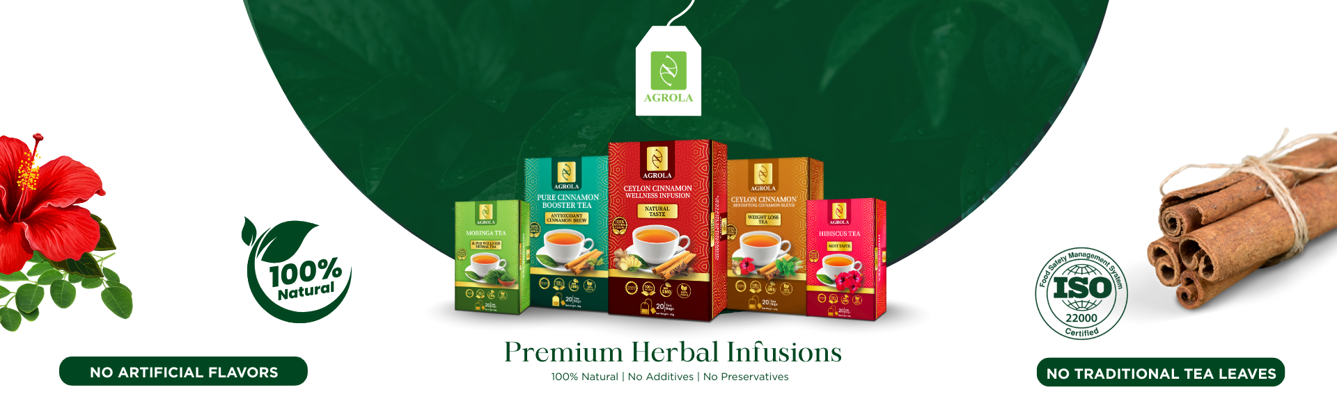 A specialty herbal blend from AGROLA CEYLON, crafted without traditional tea leaves and made entirely from 100% natural ingredients.