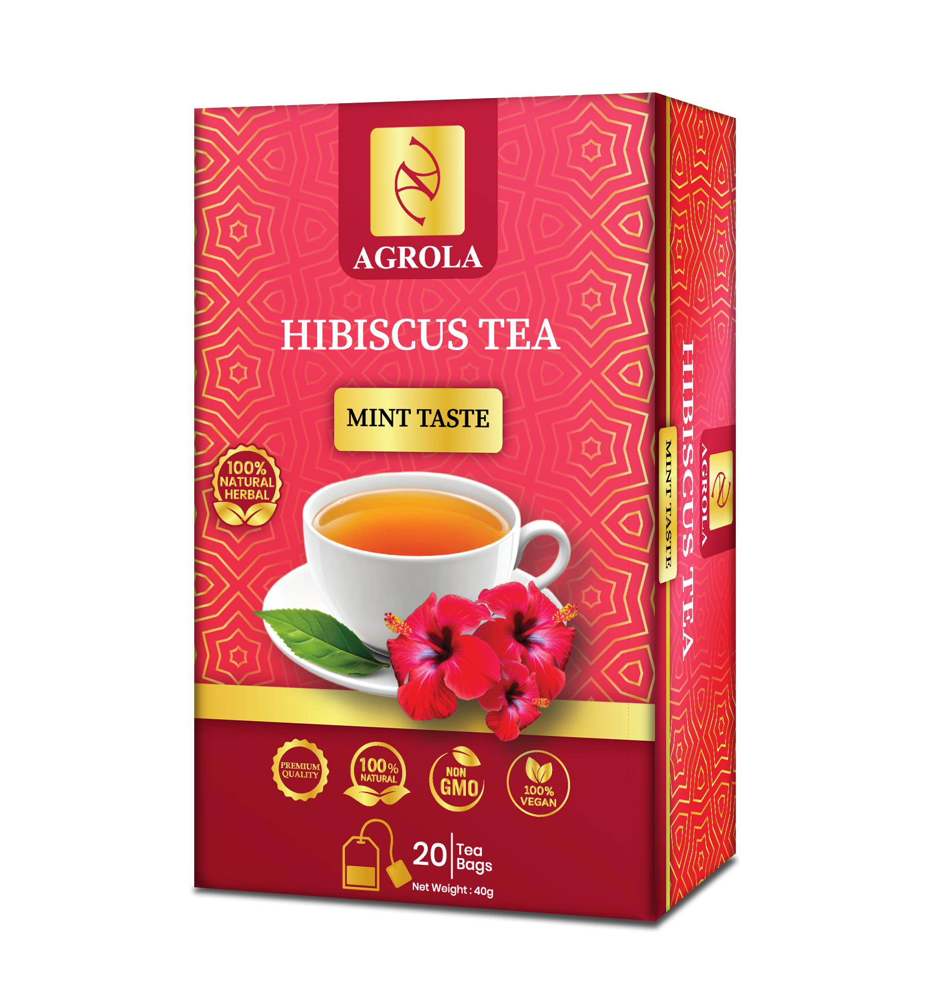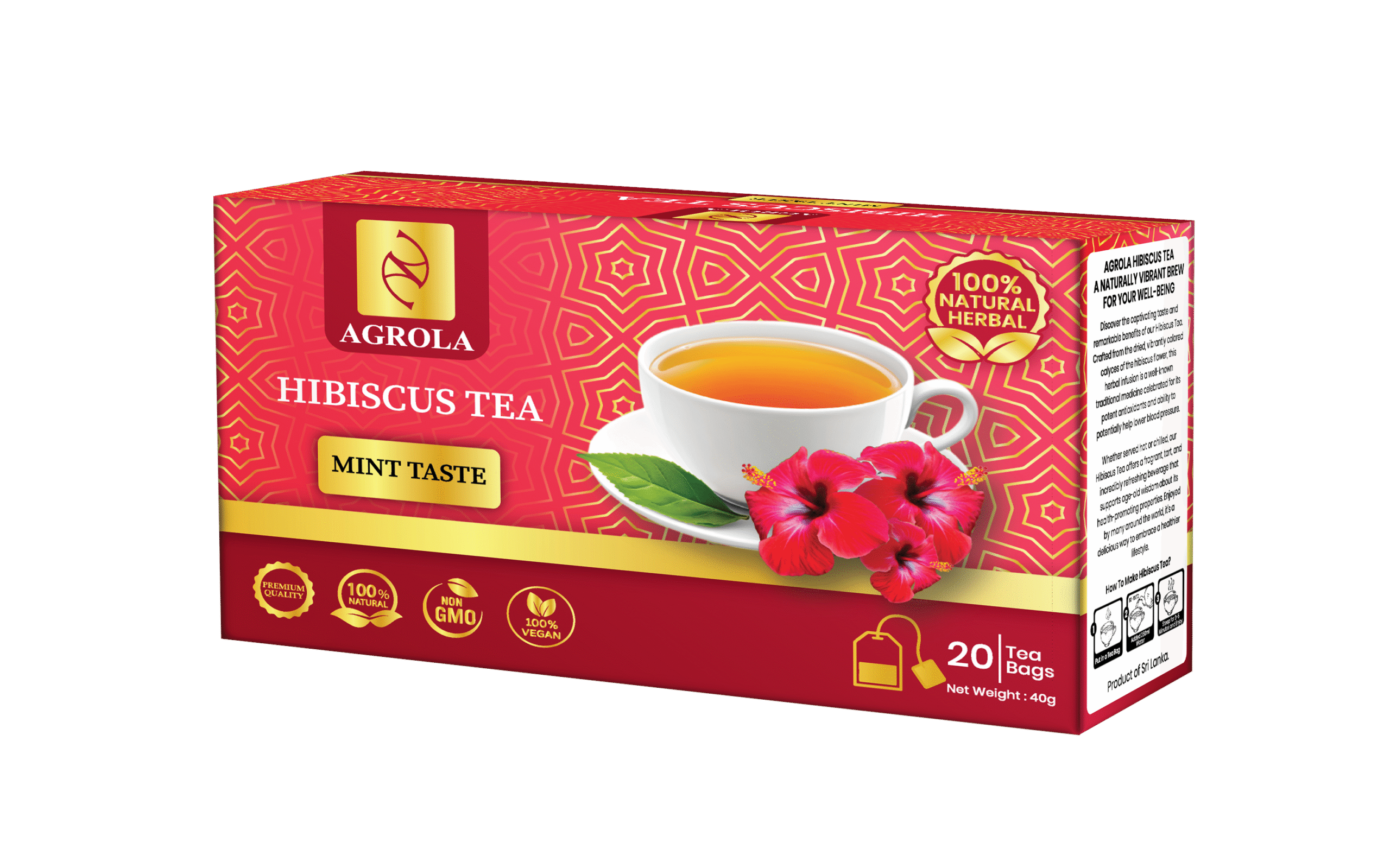 AGROLA Ceylon Hibiscus Spearmint Herbal Tea 20 Tea Bags Caffeine Free Antioxidant Wellness Tea