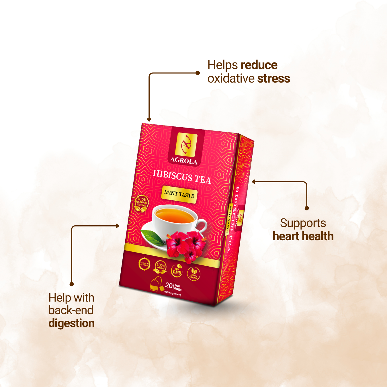 Free from additives, preservatives, and artificial flavors, AGROLA Hibiscus Spearmint Tea is made with 100% natural ingredients, making it ideal for daily consumption. Enjoy a warm cup for calm and comfort, or brew it cold for a refreshing iced herbal drink perfect for tropical climates and healthy lifestyles.