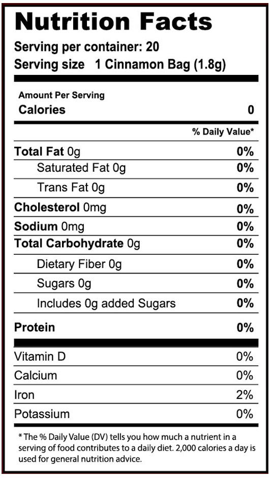 Pure Ceylon Cinnamon ,Cloves, Spearmint, Cardamom, Ginger, Hibiscus, and Lemongrass.